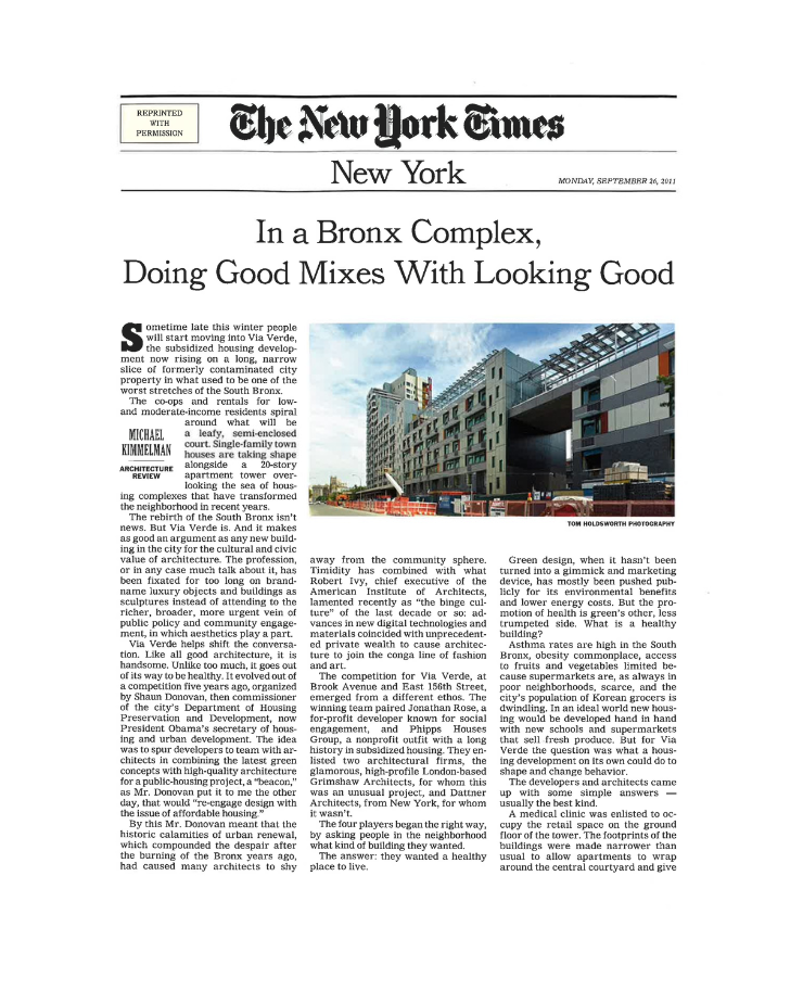 Phipps, with partner Jonathan Rose Companies, wins international design competition for affordable housing with its entry, Via Verde, setting a new standard for beauty, sustainability, and resiliency.